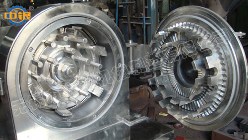 本機適用于活動齒盤和固定齒盤間的相對運動,使被粉碎物經(jīng)齒沖擊、摩擦及物料彼此間沖擊而獲得粉碎。且20型、40型、60型全部按"GMP"標準設計,整機全部用不銹鋼材料制造。30型及40型粉碎室可配水冷卻夾套、該機已達國際先進水平。