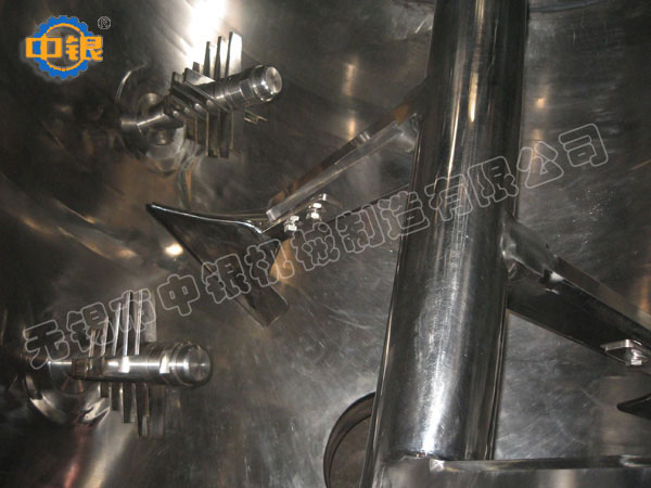 臥式犁刀式高效混合機(jī)混合時(shí),機(jī)內(nèi)物料在犁刀的作用下,一方面沿筒體內(nèi)壁作用向徑向湍,另一方面又沿犁刀兩側(cè)面的線方向飛濺。當(dāng)物料流經(jīng)飛刀時(shí),被高速旋轉(zhuǎn)的飛刀強(qiáng)烈拋散,在犁刀和飛刀的復(fù)合作用下,使物料不斷的對流、擴(kuò)散、翻動(dòng),從而在極短的時(shí)間內(nèi)達(dá)到均勻的混合。